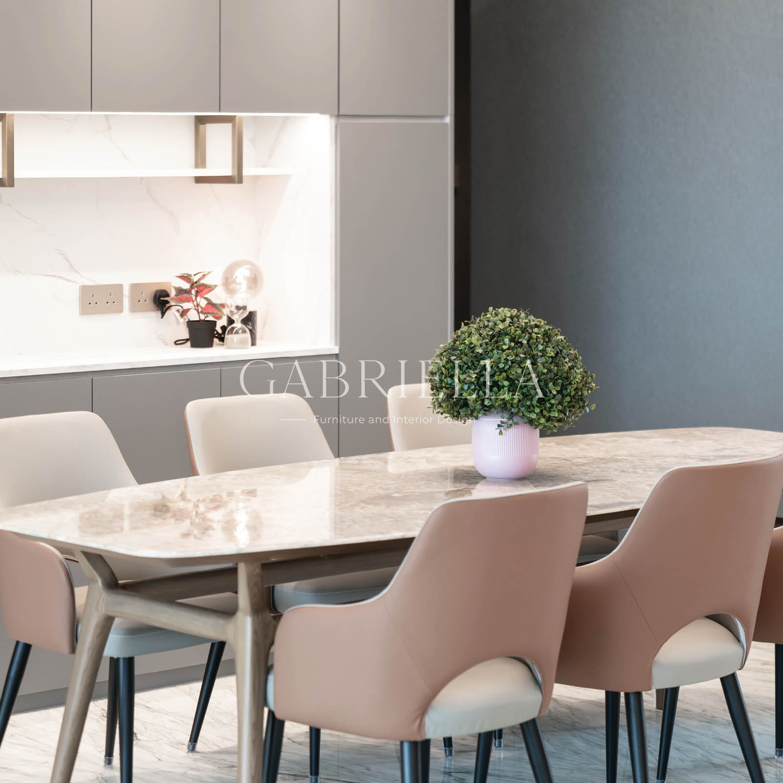 With its stunning marble floor, the spacious dining area delivers a luxurious, modern look and provides ample space for family meals or entertaining. Bespoke, adaptable lighting can be brightened or dimmed according to mood or need.
